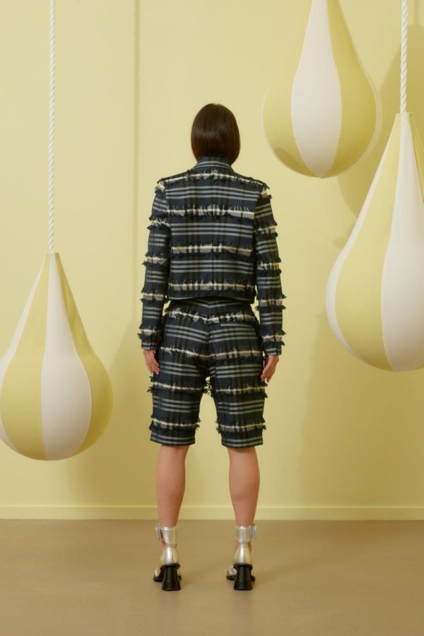Fast Shorts Navy Black Fringe Checks | Men Henrik Vibskov Boutique Shorts