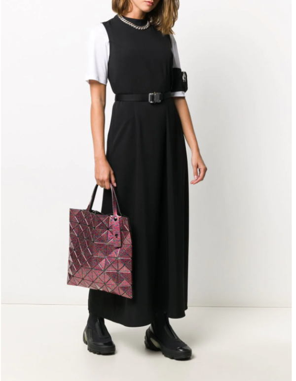 Pink Mix tote bag from Bao Bao by Issey Miyake featuring a geometric pattern, an internal logo patch, an open top design, top handles, a main internal compartment, an interior zipped compartment and a full lining.